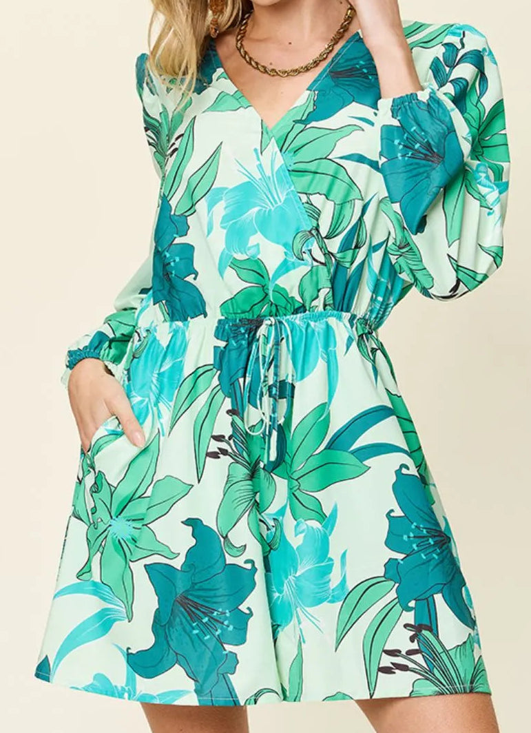 - Features: Surplice Neckline, Pocketed, Elastic Waist, Balloon Sleeve, Elastic Wrist