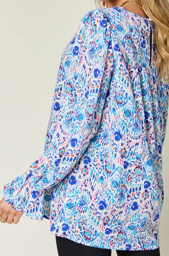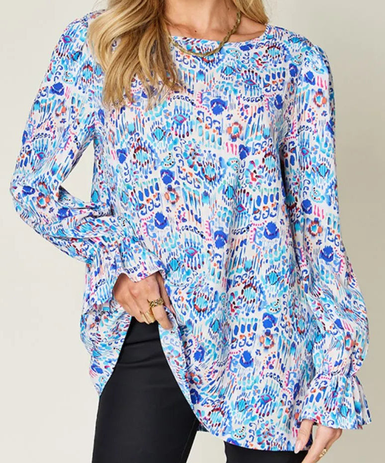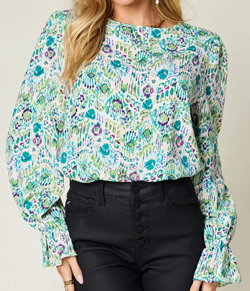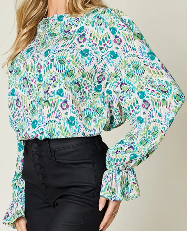 • Features: Round Neck, Flounce Sleeve, Button Closure