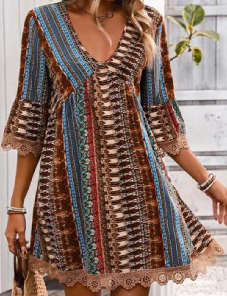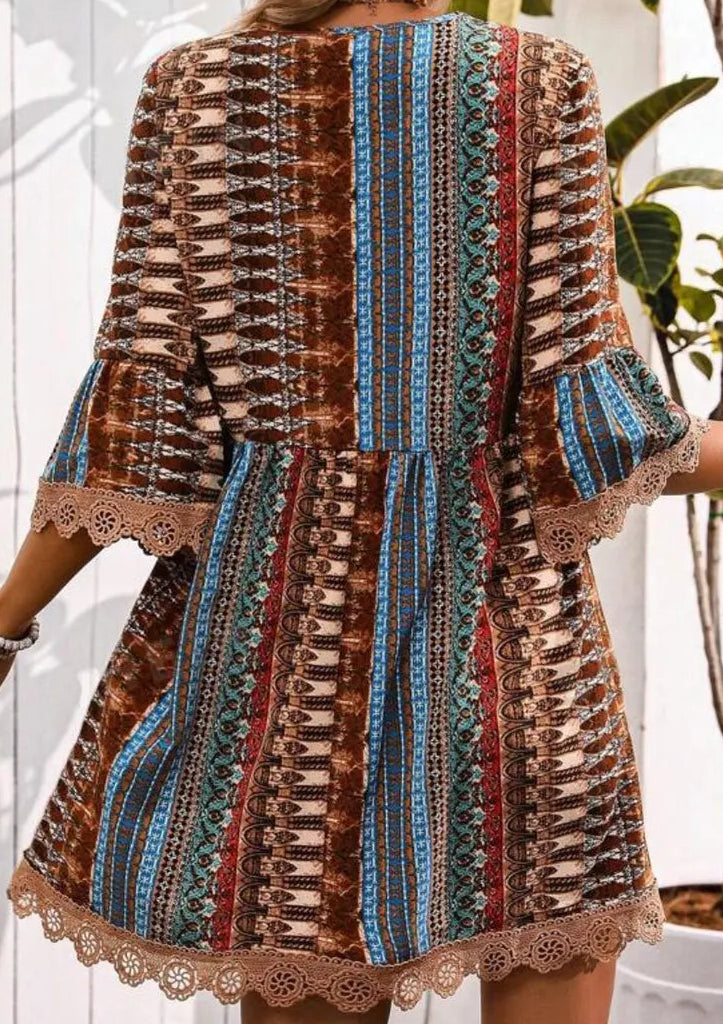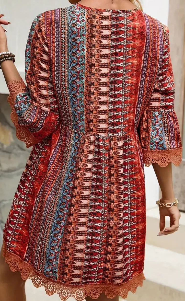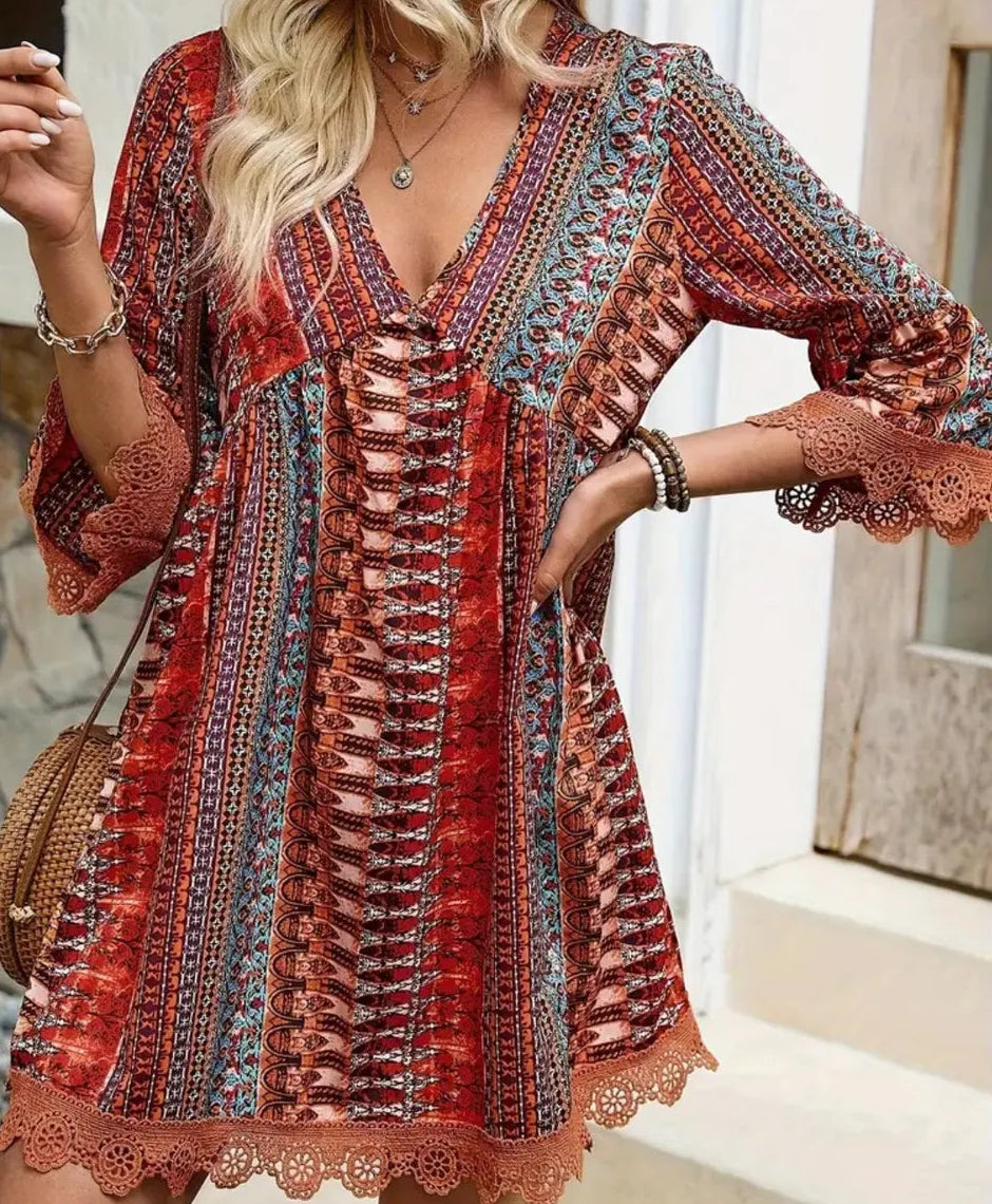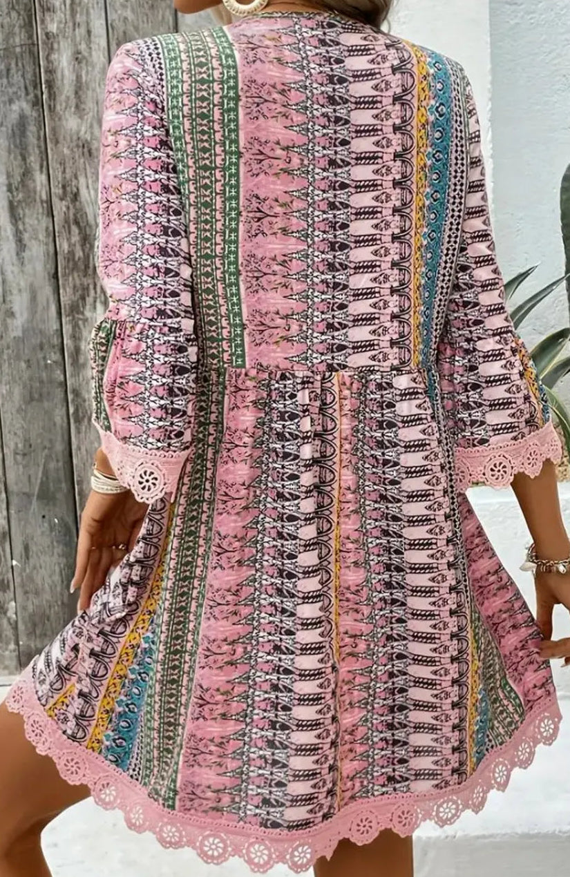 - Features: Lace Trim, Empire Waist, Babydoll, 3/4 Bell Sleeve