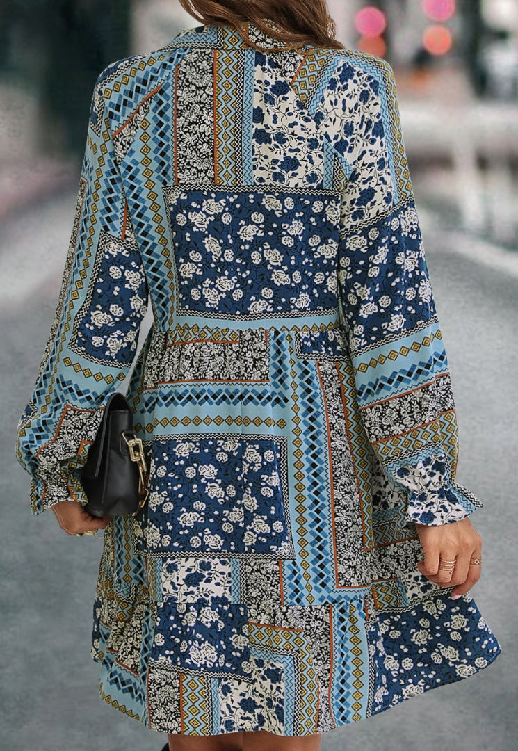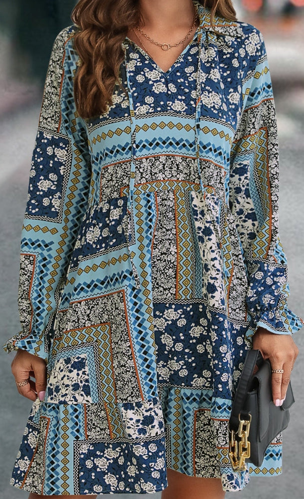 - Features: Collared, Tie, Flounce Sleeve, Ruffled