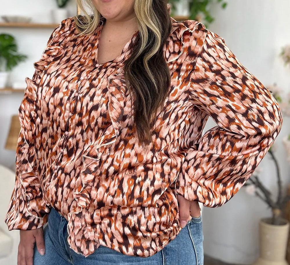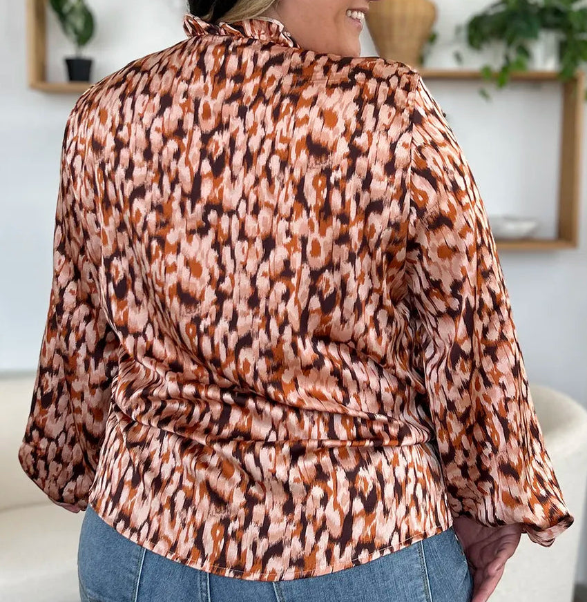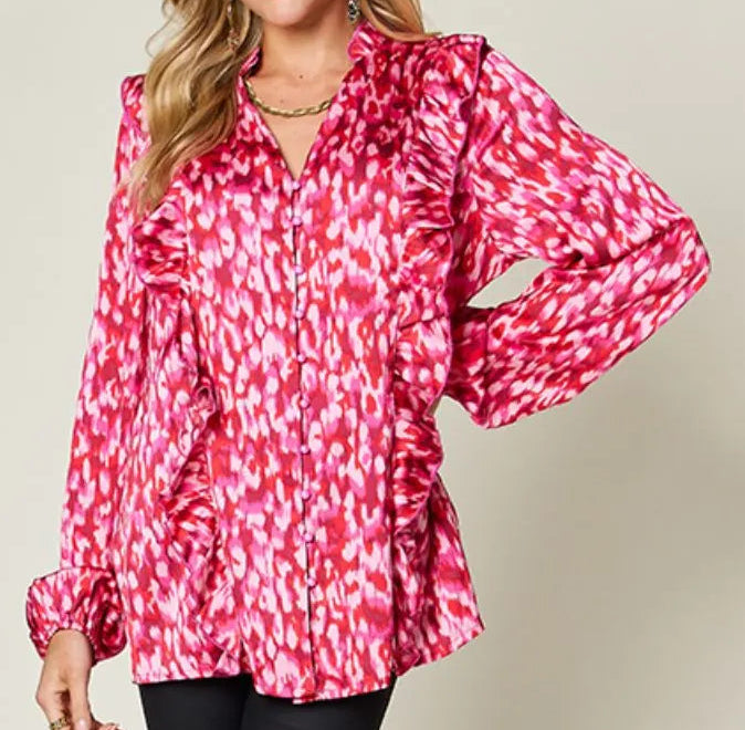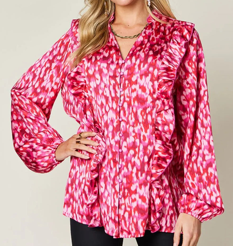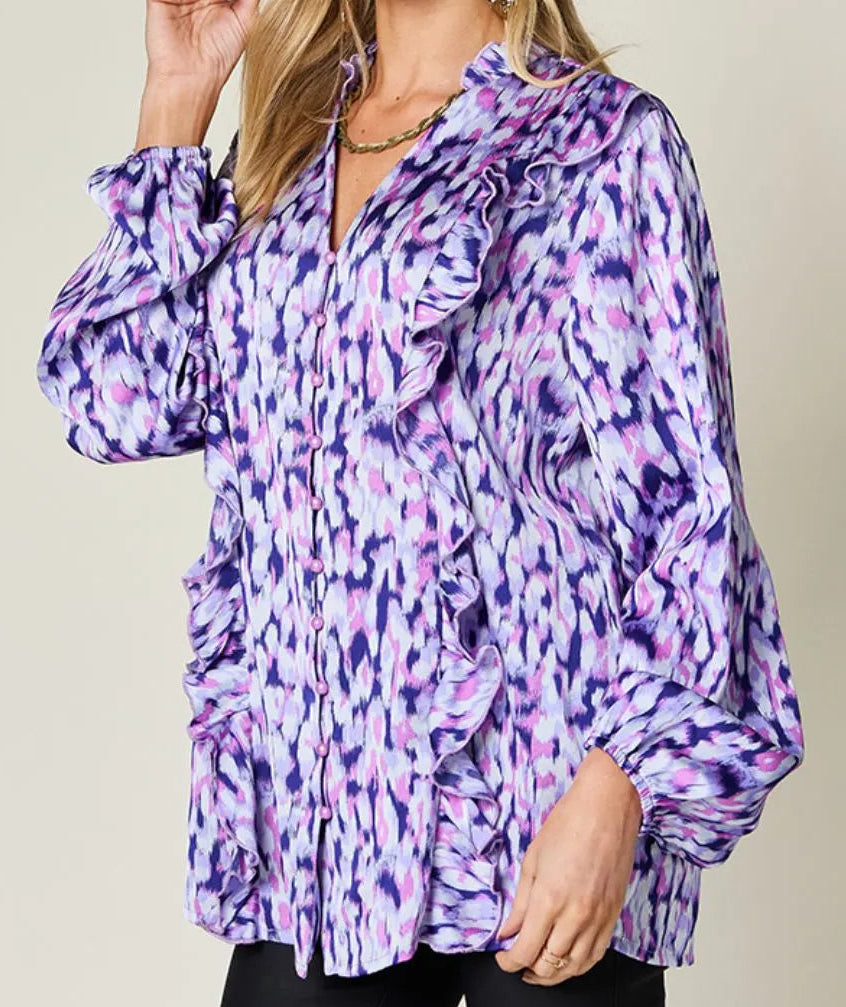 - Features: Flowy, Buttoned, Ruffled, Balloon Sleeve