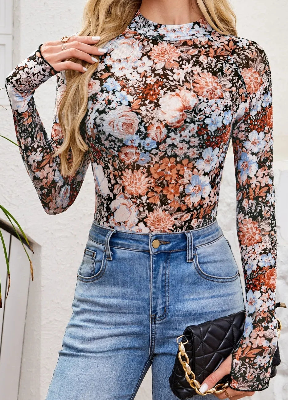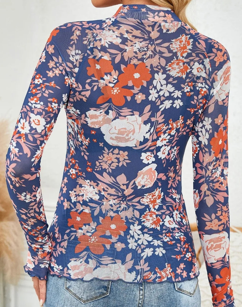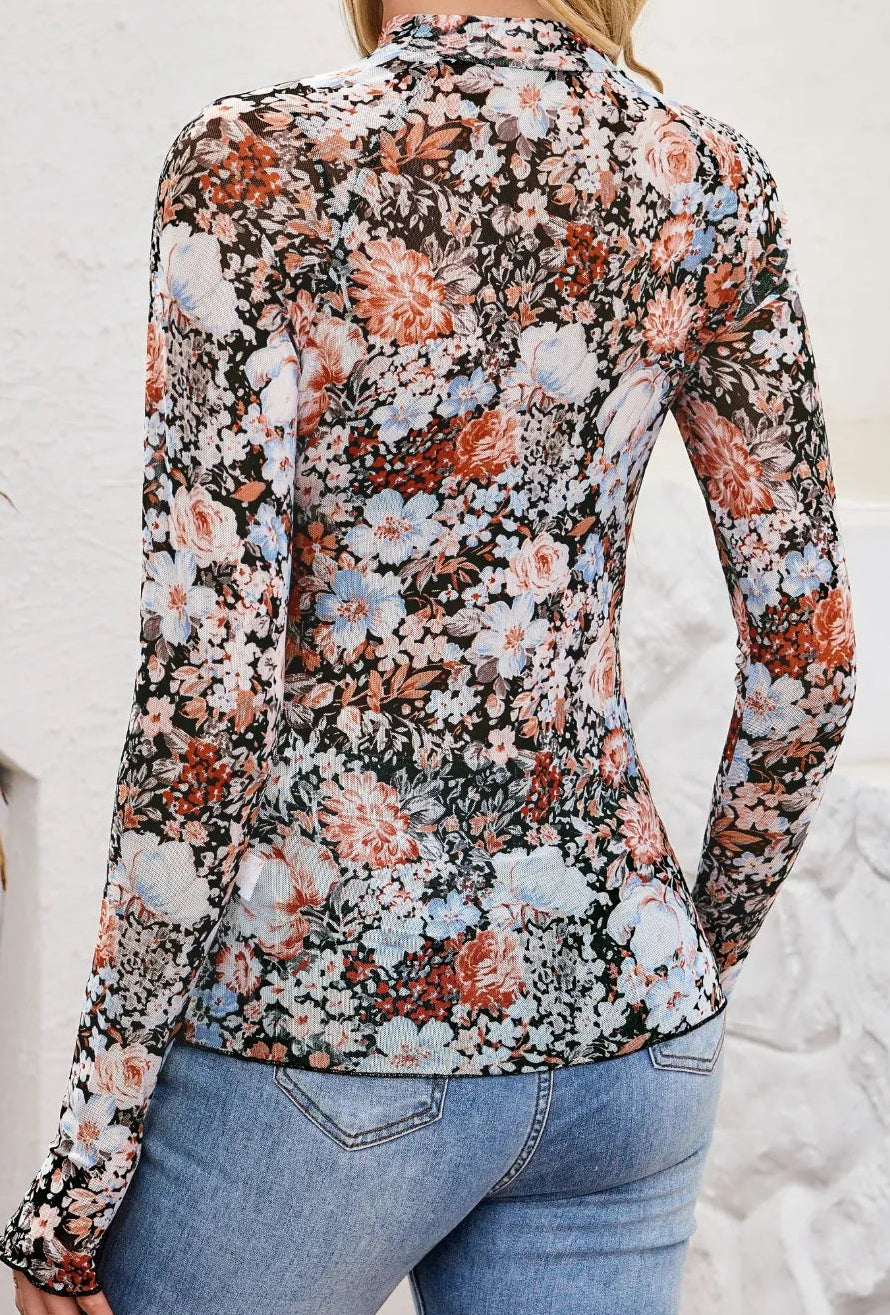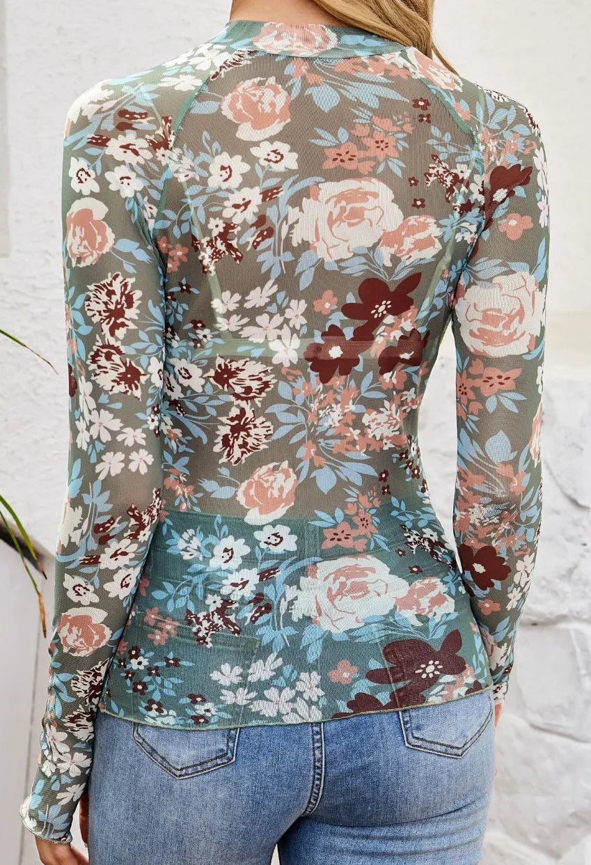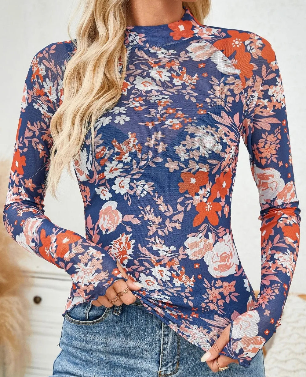 • Features: Sheer mesh, Mock neck, Thumb holes