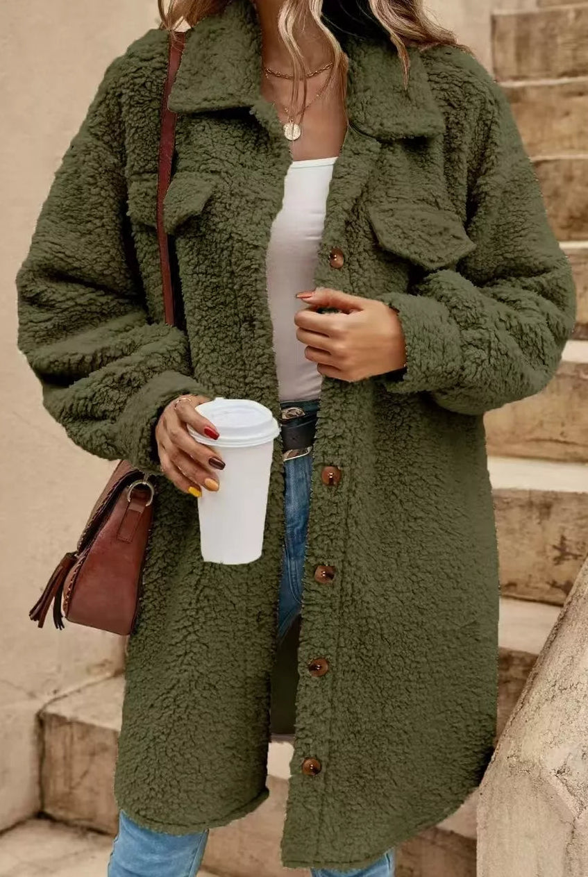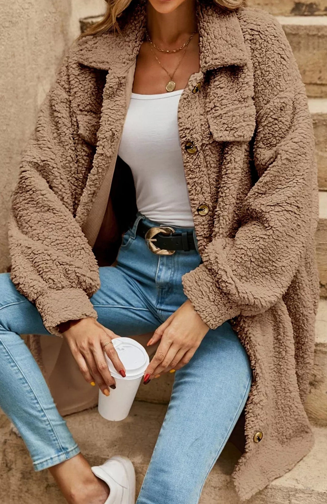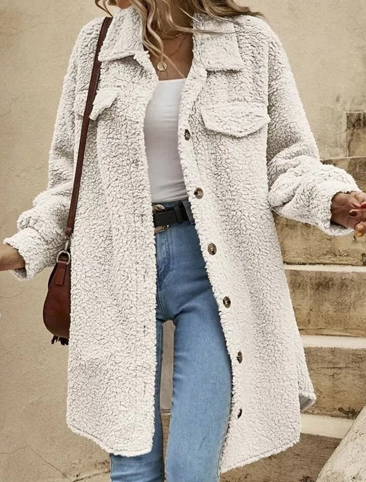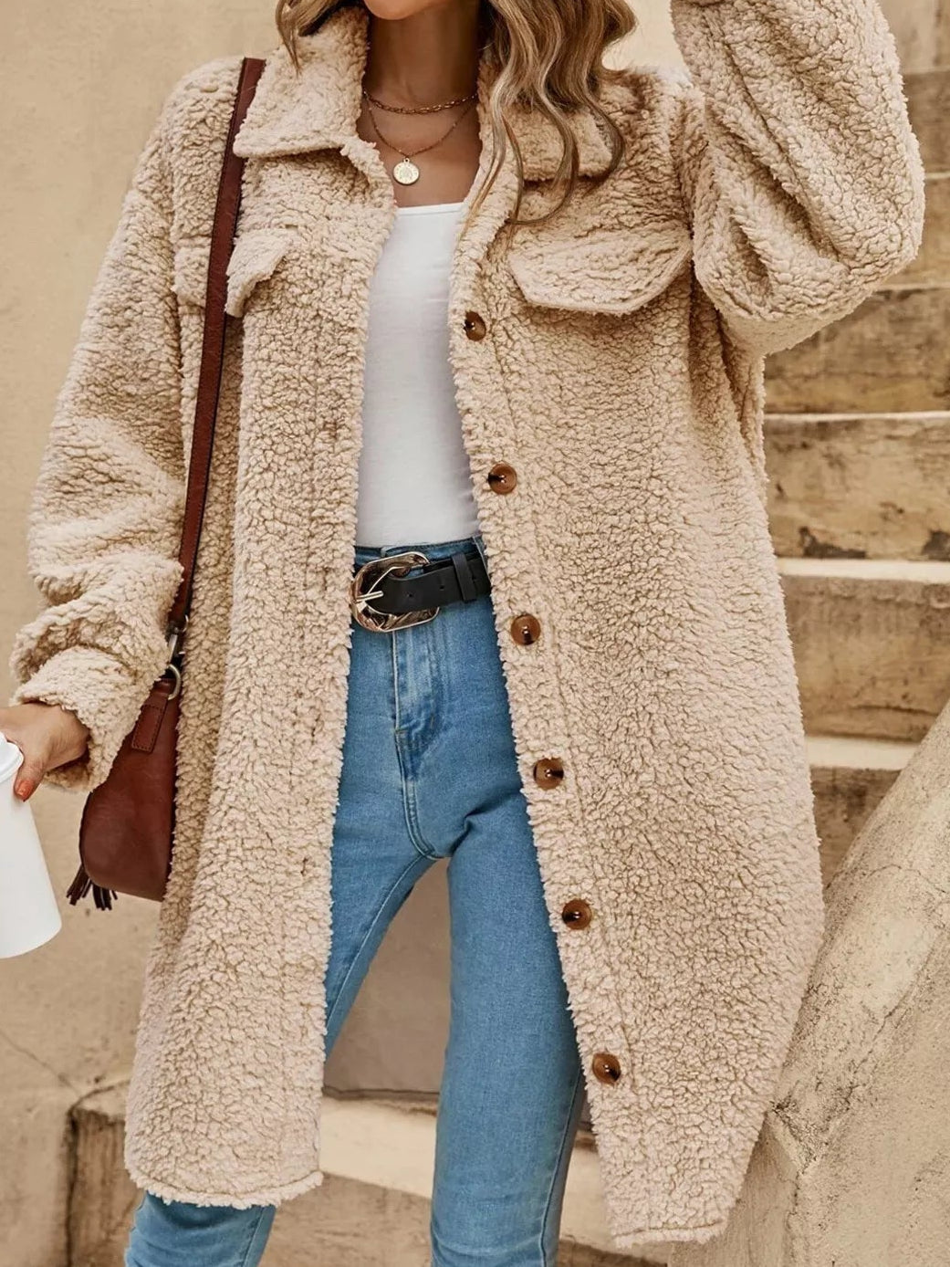 - Features: Collared, Drop Shoulder, Pocket Flaps Detail Only, Buttoned, Knee Length