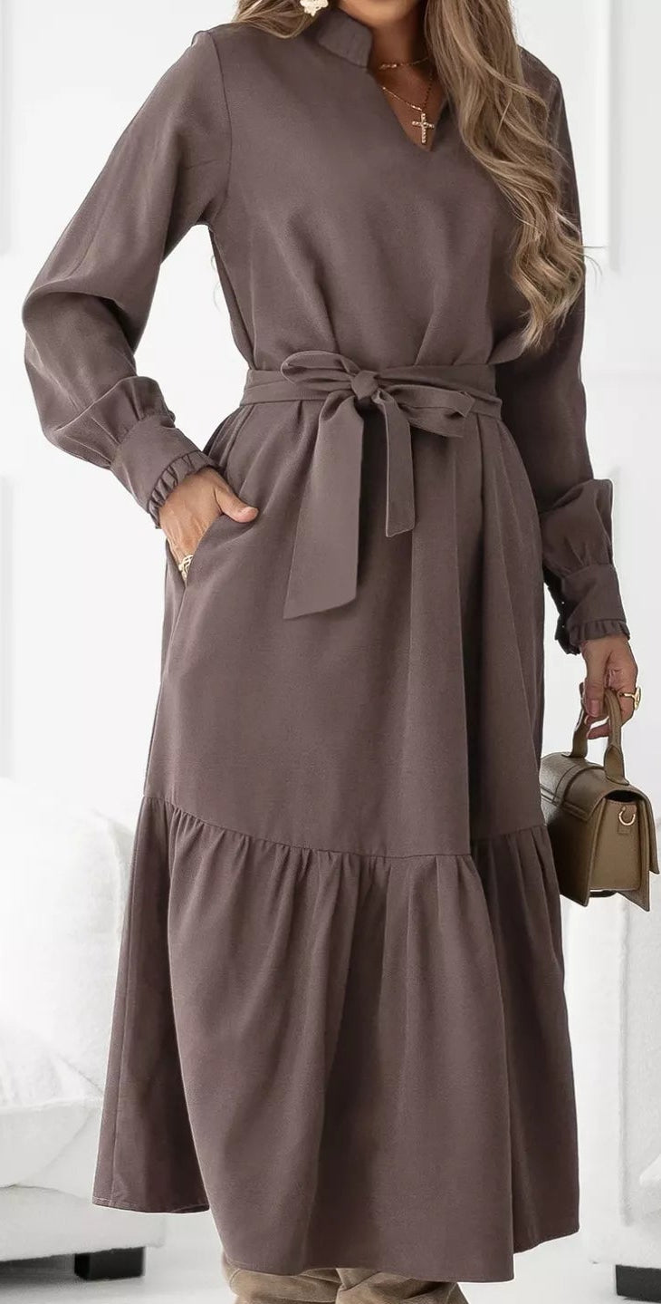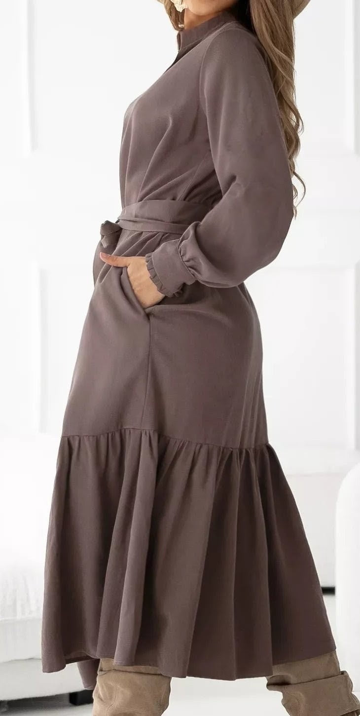 • Features: Notched Collar, Ruffled, Buttoned Cuff, Tied, Pocketed