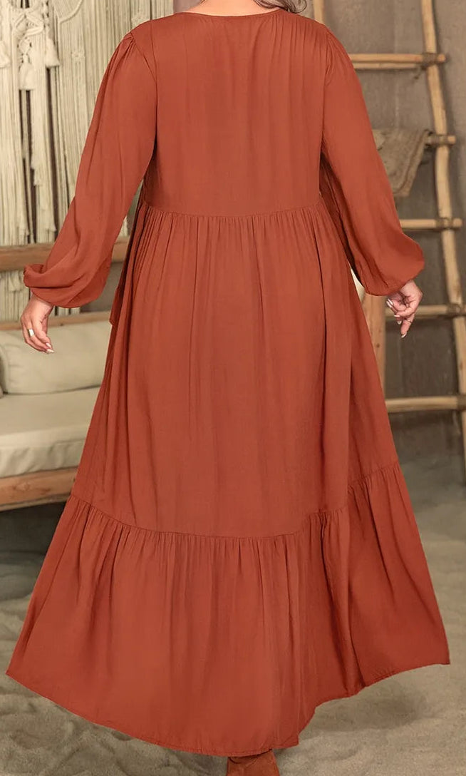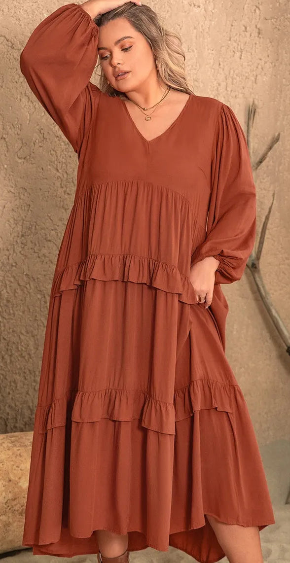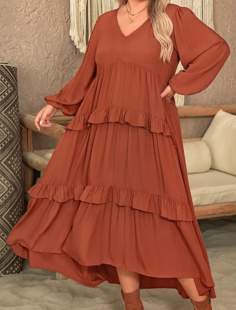 - Features: V-neck, Balloon Sleeve, Ruffled, Tiered