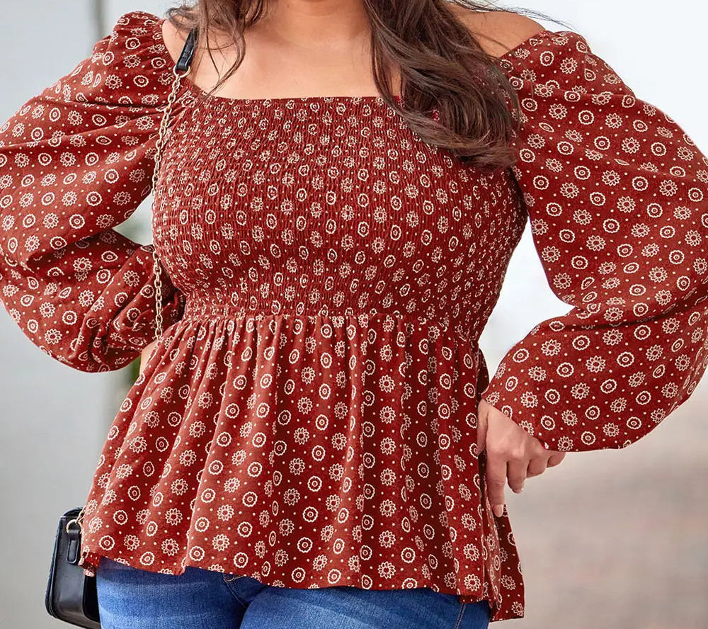- Features: Elastic On/Off Shoulder, Shirred, Baby Doll, Balloon Sleeve