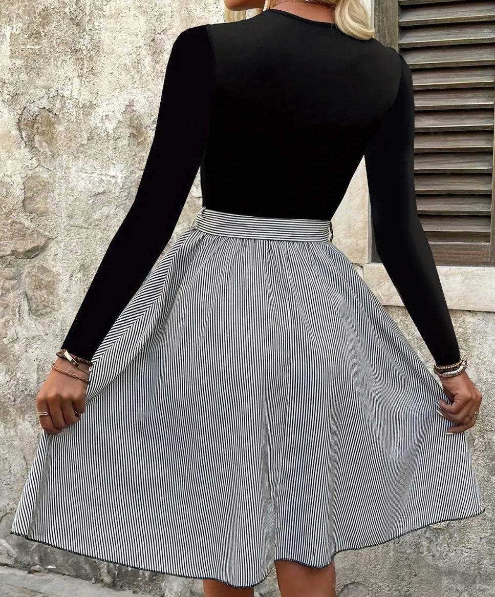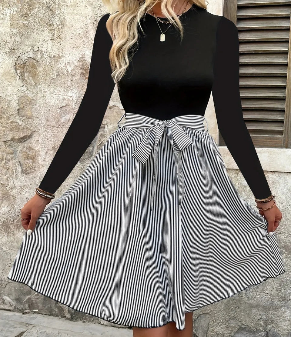 • Features: Fitted Top Tie Belt, Flowy Skirt
