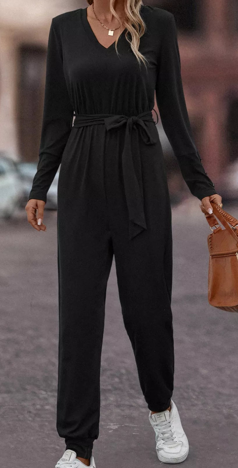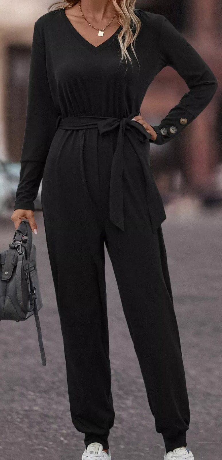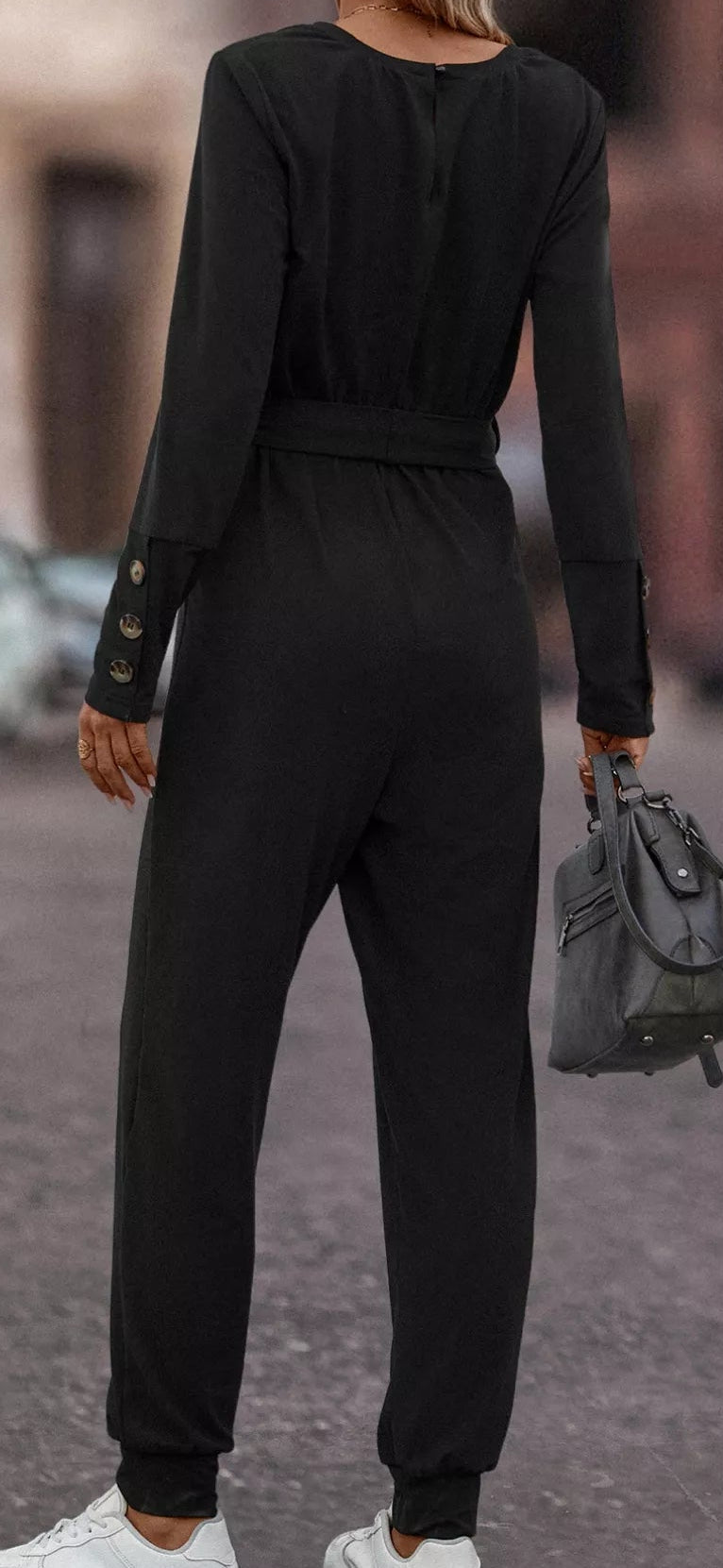- Features: V-neck, Button Details, Belted, Jogger Bottom
