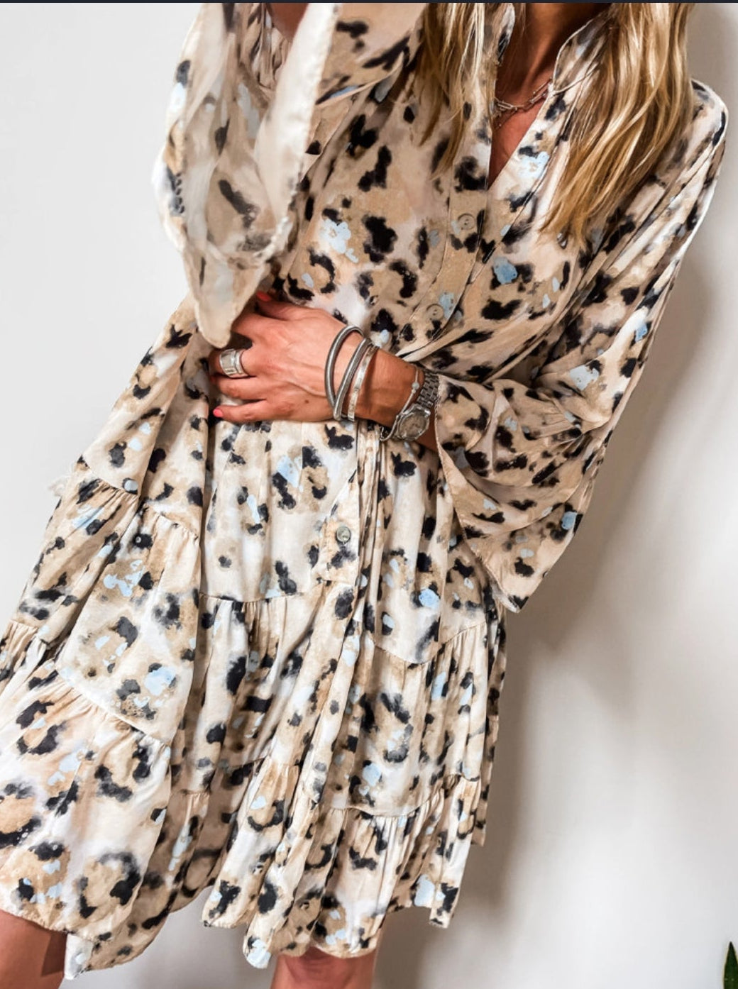 Buttoned, Tiered, Bell Sleeve, Notched Collar