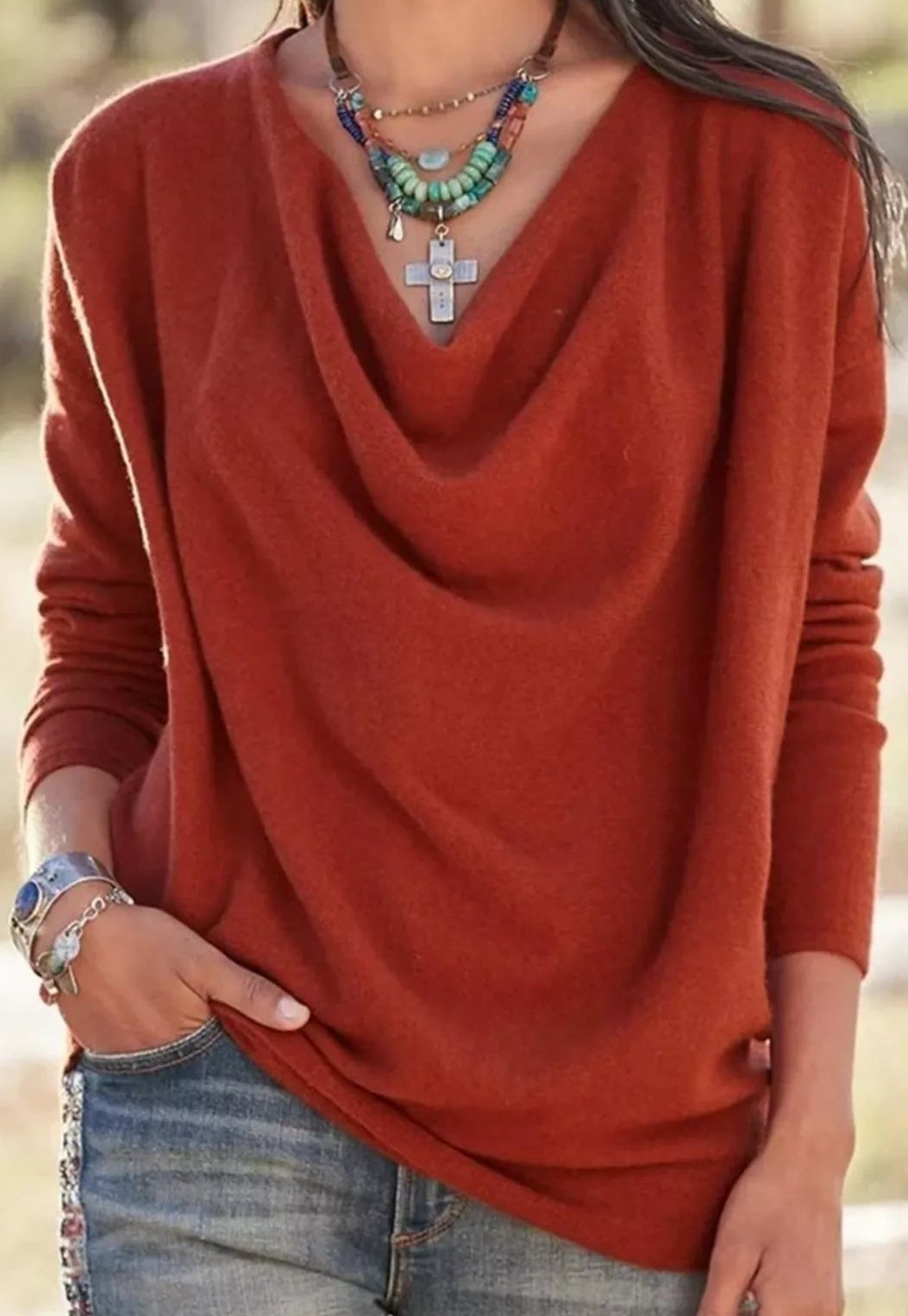 - Features: Cowl Neck