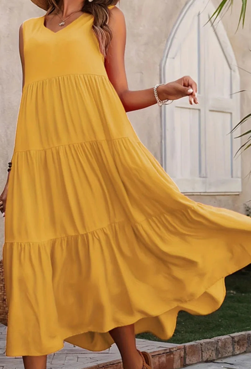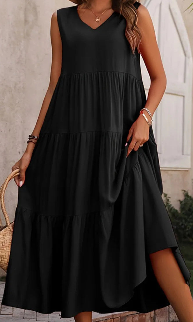 • Features: V-neck, Sleeveless, Tiered
